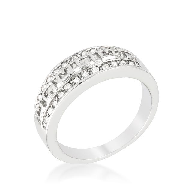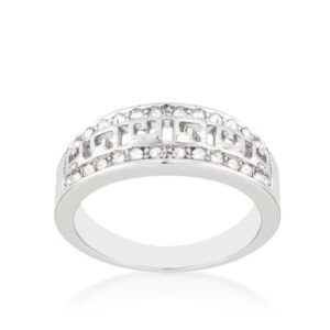 Add some feminine sparkle with this petite silver tone ring that comes fashioned with shimmering crystals. Our genuine rhodium finish is achieved using an electroplating process that coats the item with heavy layers of rhodium a close cousin to platinum which gives our jewelry a platinum luster.
