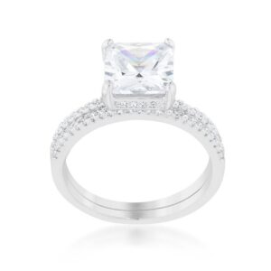 Feminine and elegant. Simple and solitaire. Fashioned with a luminous 2.5 carat cubic zirconia this ring is a lovely addition to any collection. Our genuine rhodium finish is achieved using an electroplating process that coats the item with heavy layers of rhodium a close cousin to platinum which gives our jewelry a platinum luster.