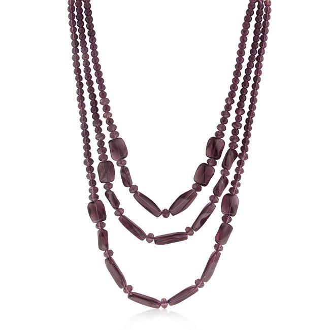This is Three Strand Purple Beaded Necklace that is the perfect outfit enhancer. Our genuine rhodium finish is achieved using an electroplating process that coats the item with heavy layers of rhodium a close cousin to platinum which gives our jewelry a platinum luster.