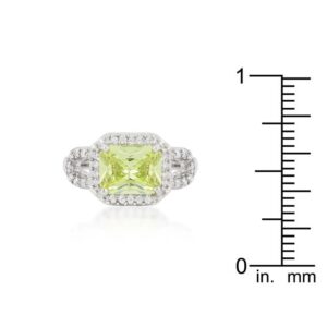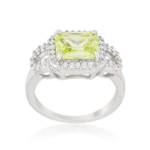A brilliant radiant zircon pops with elegance in this halo engagement style. Genuine Rhodium Plating is achieved using an electroplating process that coats the item with heavy layers of rhodium a close cousin to platinum which gives our jewelry a platinum luster.