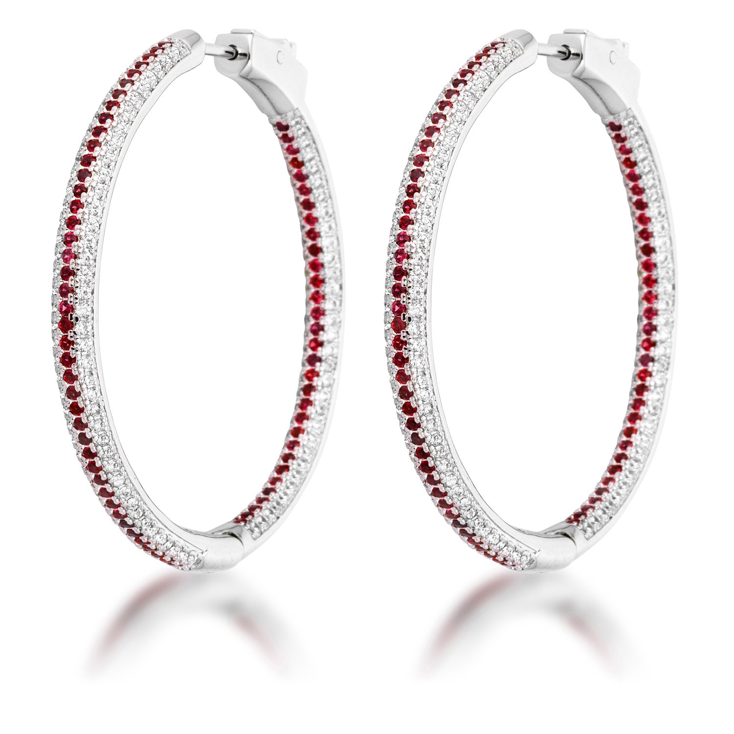 A contemporary classic these hoops are perfect for a sophisticated sparkle. With their intricate micro pave setting these hoop earrings add style and glamour to your fashion. These earrings are glittering with white and red cubic zirconia and make a lovely accent to both casual or formal wear.