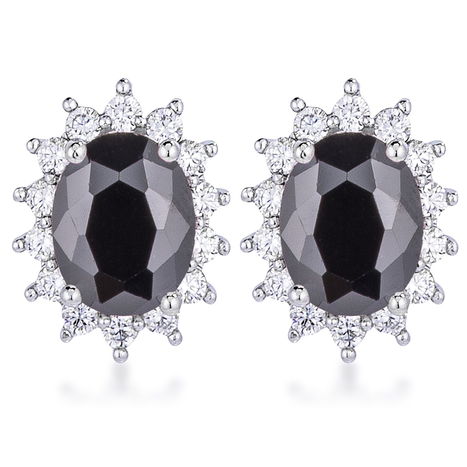 Rhodium Plated Pink Petite Royal Oval Earrings