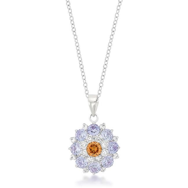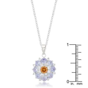 rhodium plated Cubic Zirconia Cluster Circle Pendant features a dazzling array of cubic zirconia set over a shiny silver tone. Our genuine rhodium finish is achieved using an electroplating process that coats the item with heavy layers of rhodium a close cousin to platinum which gives our jewelry a platinum luster.