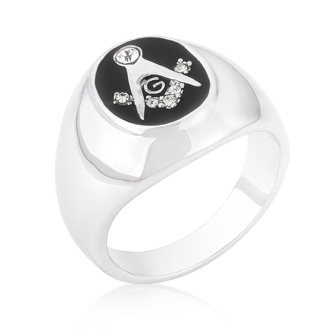 This onyx ring features a masonic emblem with clear accents in a nice silver tone. Genuine Rhodium Plating is achieved using an electroplating process that coats the item with heavy layers of rhodium a close cousin to platinum which gives our jewelry a platinum luster.