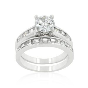 The rhodium plated Stackable Ring Set features a set of baguette accented bands with a wondrous clear cubic zirconia center. Our genuine rhodium finish is achieved using an electroplating process that coats the item with heavy layers of rhodium a close cousin to platinum which gives our jewelry a platinum luster.