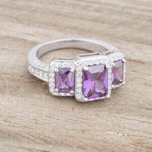A classic set of clear cut stones accompany a trio of amethyst radiant cut center stones in this elegant 2.3 carat cocktail ring. A modern twist on a classic piece.