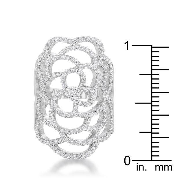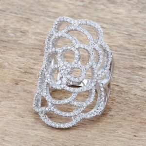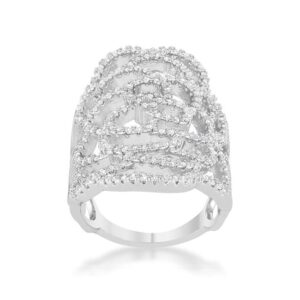 Small delicate stones accent the filigree design of a contemporary cocktail ring.