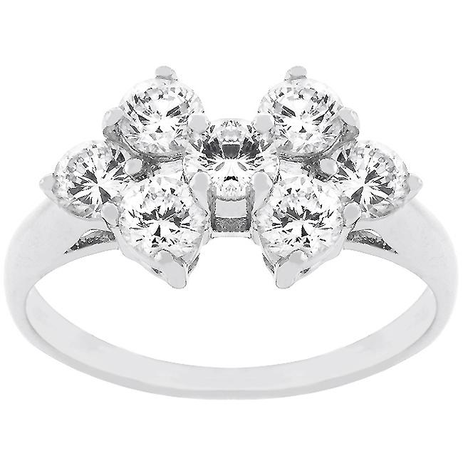 Cluster Ring features seven sparkling round cut cubic zirconia clustered together on a shimmering silver tone band. Genuine Rhodium Plating is achieved using an electroplating process that coats the item with heavy layers of rhodium a close cousin to platinum which gives our jewelry a platinum luster.
