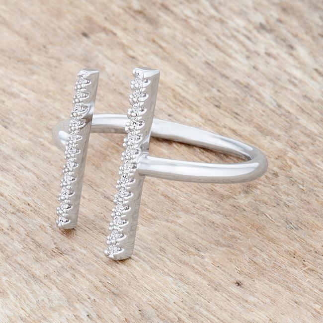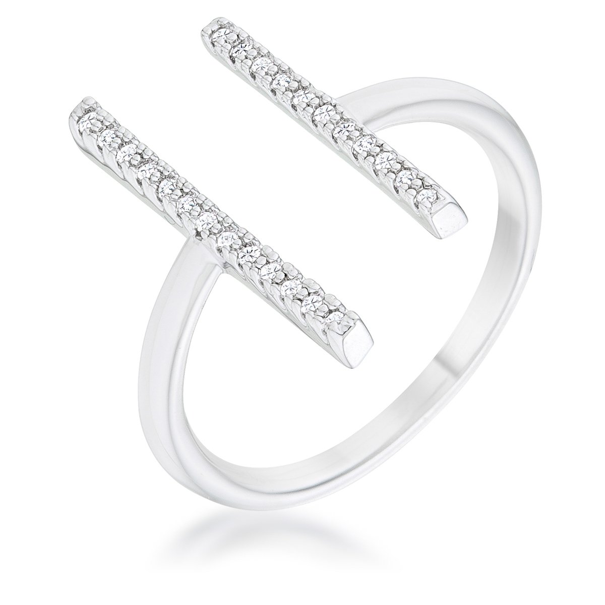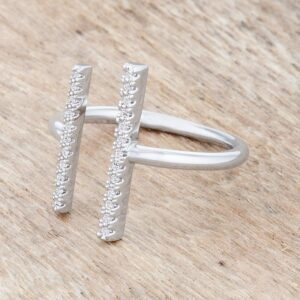A simple yet on-triend parallel design is accented with clear stones for a contemporary and delicate cuff style look.