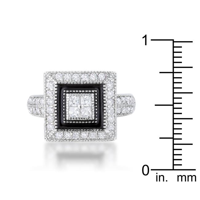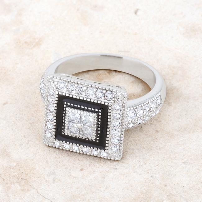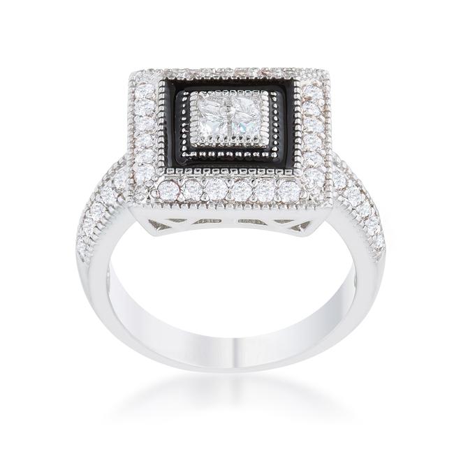 Clear stones accent an antique-inspired cocktail ring in this beautiful statement piece. This piece can certainly liven up a simple ensemble. Our genuine rhodium finish is achieved using an electroplating process that coats the item with heavy layers of rhodium a close cousin to platinum. This gives our jewelry a platinum luster.