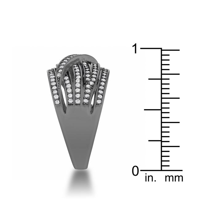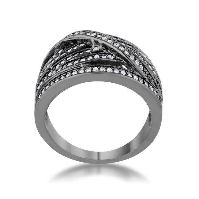 Clear stones accent the criss-cross woven design of a wide contemporary style cocktail ring.