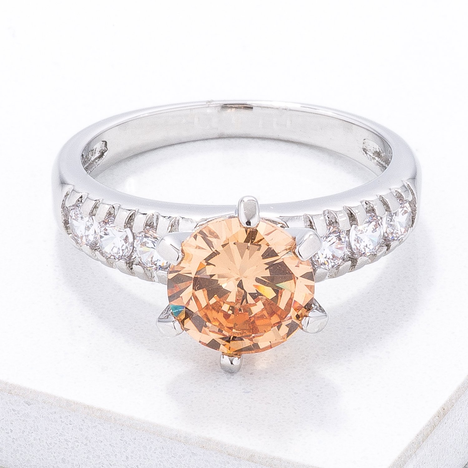 This 2.1 carat sparkler features a romantic champagne center stone giving the traditional engagement style ring a feminine unique look.