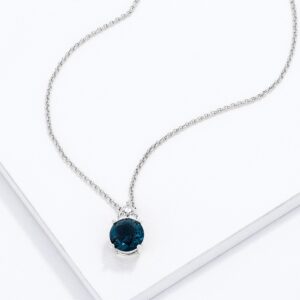 • Simple Rhodium Plated 9mm Blue Green CZ Pendant