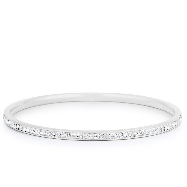 • Simple Rhodium Plated Finish Crystal Bangle
