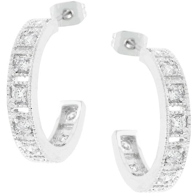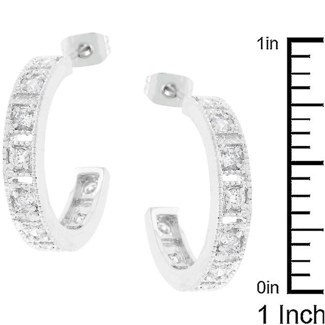 The Studded Cubic Zirconia Hooplet Earrings will glitter and shine throughout the night. With the ability to wow this is the perfect piece to have in your collection. Genuine Rhodium Plating is achieved using an electroplating process that coats the item with heavy layers of rhodium a close cousin to platinum which gives our jewelry a platinum luster.