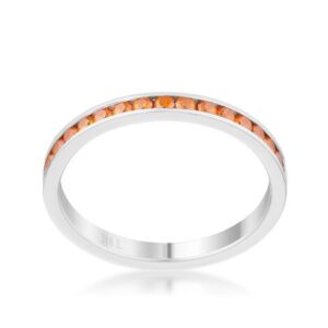 Small orange stones come full circle in this simple and delicate eternity band