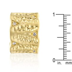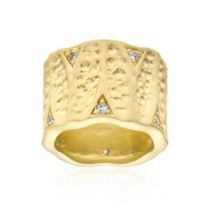 Sparkling stones and organic matte gold designs enhance this ring’s look with on-trend features. 18k plated gold is achieved using an electroplating process that coats the item with heavy layers of 18k Yellow Gold and color-treated to display a perfect 14k Hamilton gold color.