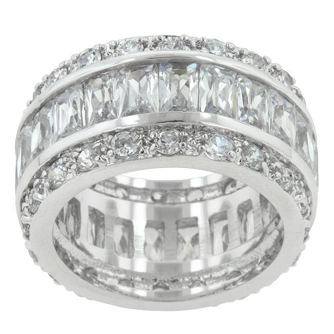 This piece is one of our most popular eternity styles; a true timeless classic. Our genuine rhodium finish is achieved using an electroplating process that coats the item with heavy layers of rhodium a close cousin to platinum which gives our jewelry a platinum luster.
