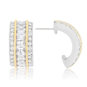 Dressed up or down the possibilities are endless. Accessorize with this pair of earrings today! This earring set has a matching pendant too. Our two-tone and tri-tone process use 18k gold that electroplated coating the item with heavy layers of 18k yellow gold giving it that 14k hamiliton gold polished look. The silver tone is achieved by applying a heavy coating of genuine rhodium to the item giving is a lustrous silver tone high polish.