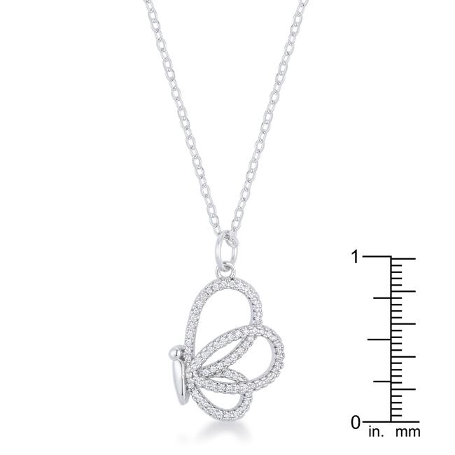Whimsical Rhodium CZ Butterfly Pendant and Necklace