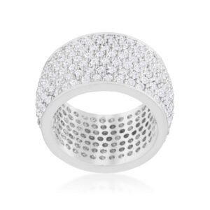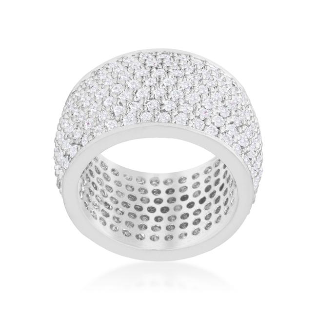 Wide Pave Cubic Zirconia Silvertone Band Ring